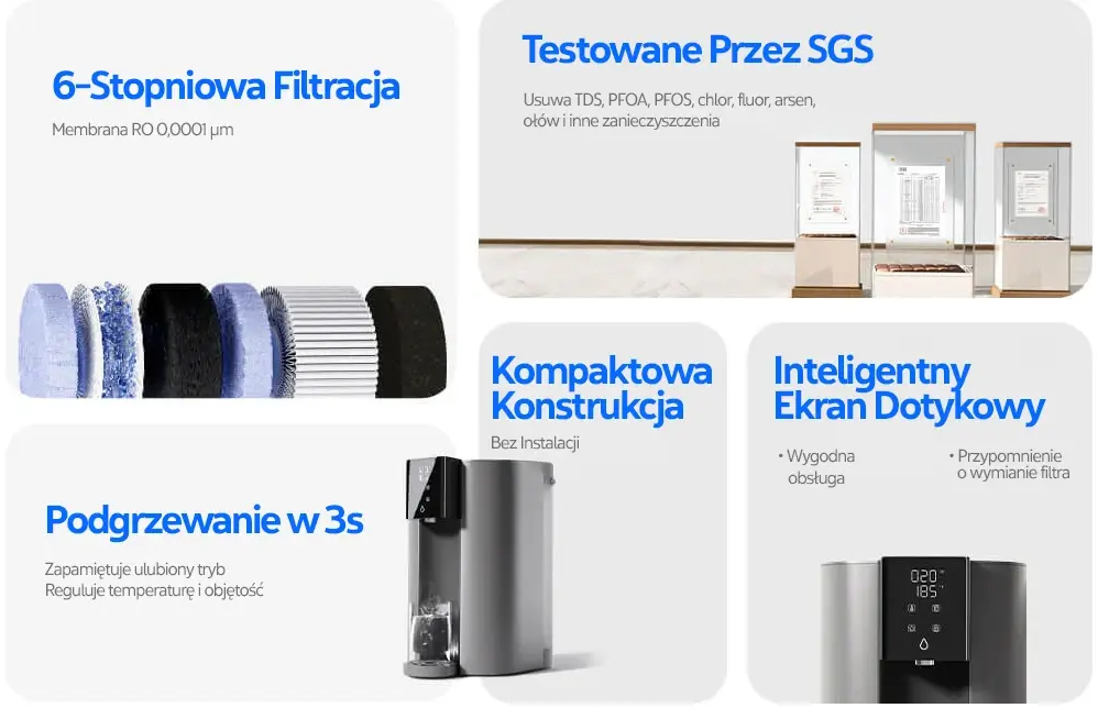 | Funkcje | Odwrócona osmoza, Podgrzewanie wody |