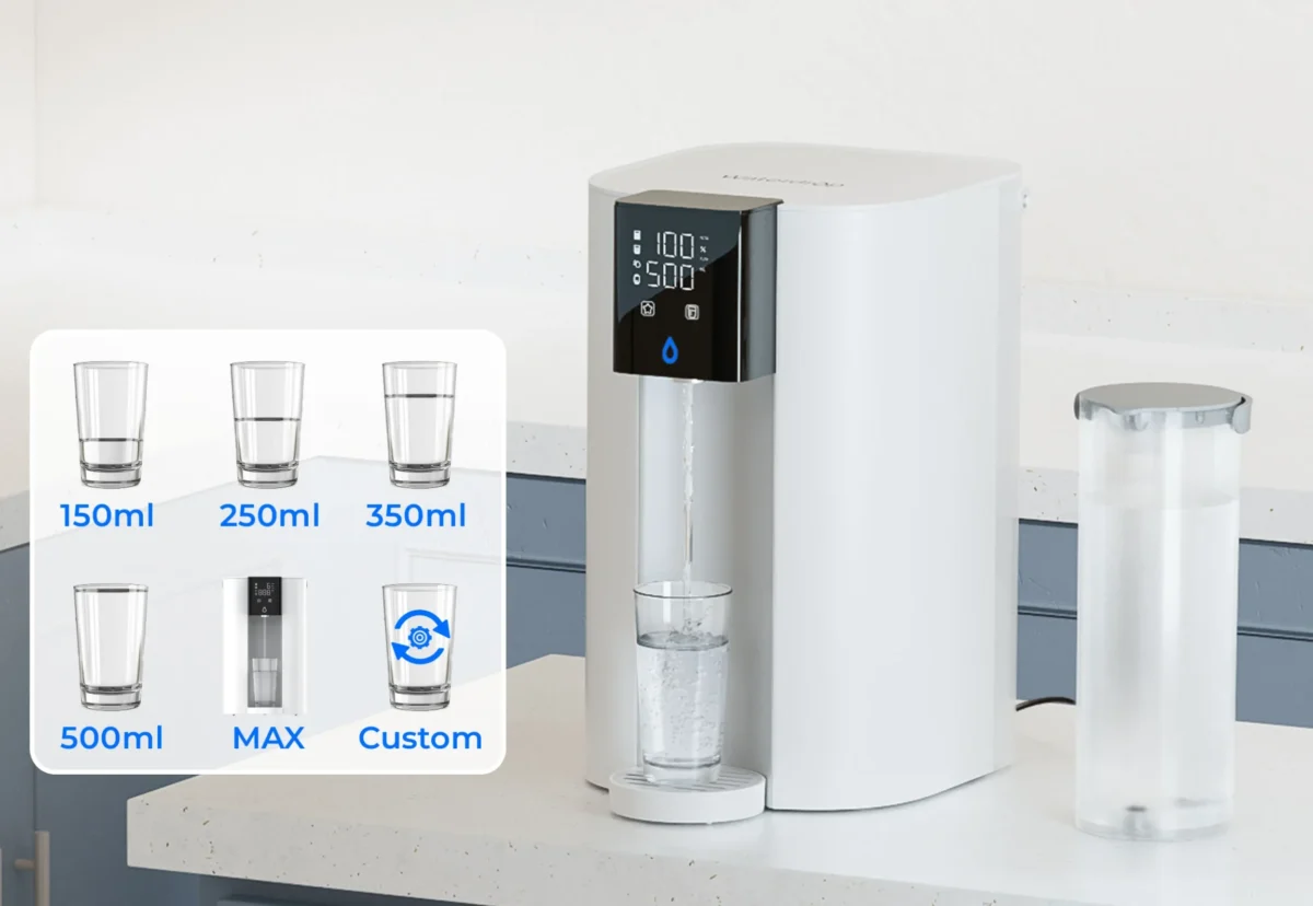 Urządzenie oferuje 5 ustawień objętości, co ułatwia precyzyjne dozowanie wody do różnych naczyń.
