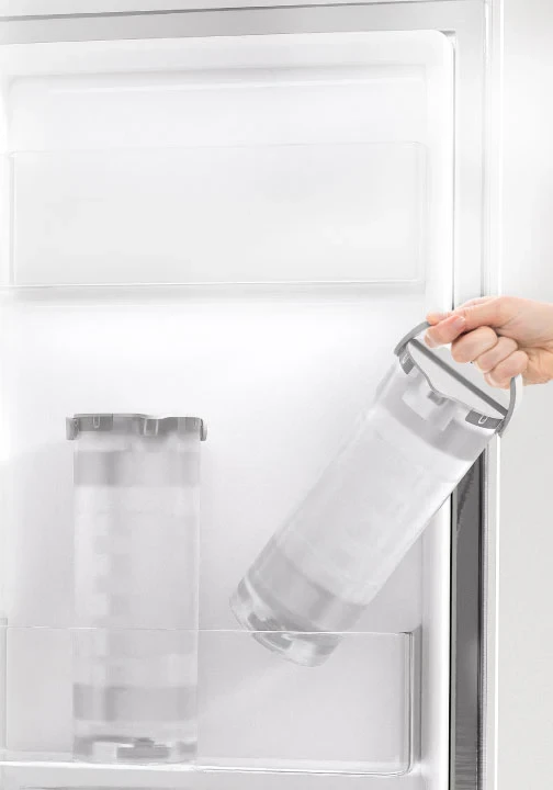 Wyjmowany pojemnik na czystą wodę można łatwo przenieść i wstawić do lodówki. Ułatwia to nalewanie do naczyń oraz korzystanie z filtrowanej wody poza samym urządzeniem.