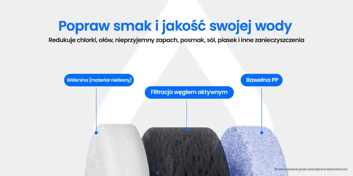 Materiały filtracyjne są dopuszczone do kontaktu z wodą pitną i pozostają neutralne dla jej smaku oraz zapachu.