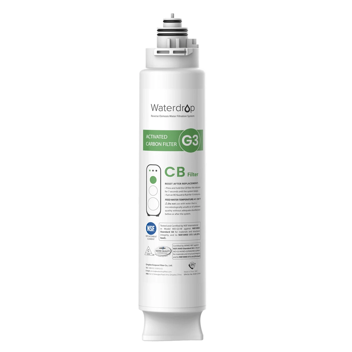 Waterdrop G3-N3CB to wymienny wkład węglowy końcowy przeznaczony do filtrów wody Waterdrop G3P600 i G3P800. Odpowiada za końcowy etap filtracji po głównych stopniach oczyszczania, wspierając poprawę smaku i zapachu wody pitnej.
