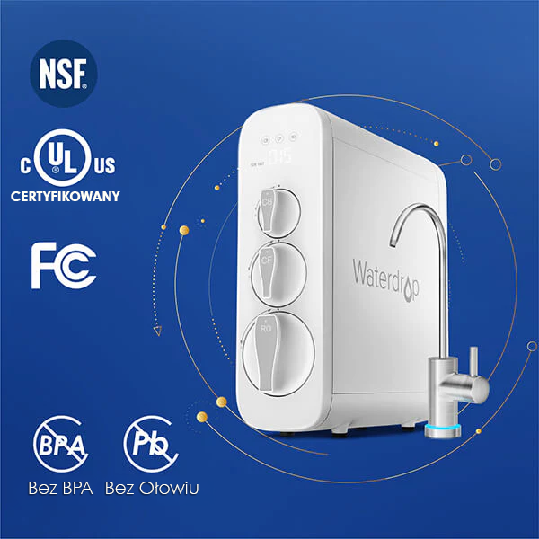 System odwróconej osmozy Waterdrop został przetestowany i certyfikowany zgodnie ze standardem NSF/ANSI 58 – współczynnik redukcji TDS (rozpuszczonych substancji stałych) sięga aż 91,9%.
