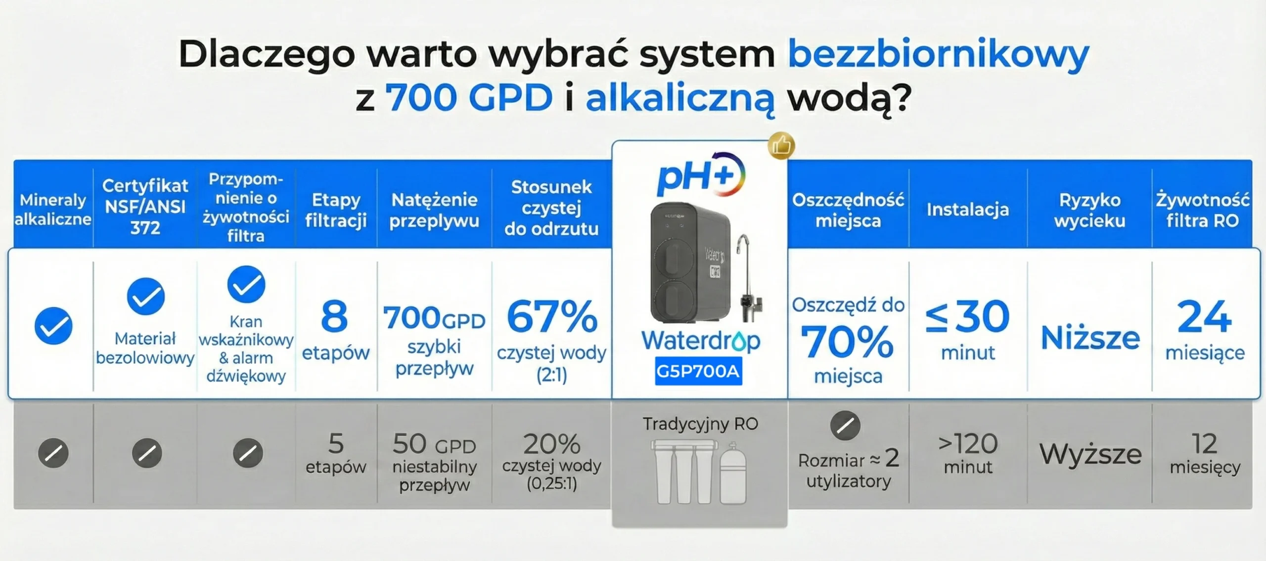 Natychmiastowy dostęp do czystej wody bez zbiornika. - 400% więcej czystej wody, ekologiczne i oszczędne