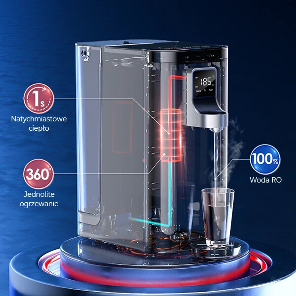 Dzięki zastosowaniu zaawansowanej technologii grzewczej z membraną o grubości 360° zapewniającą skoncentrowane ogrzewanie, system ten może zapewnić natychmiastowe podgrzanie w ciągu zaledwie jednej sekundy i dostarczyć gorącą wodę o żądanej temperaturze, spełniając Twoje potrzeby w zakresie bezpośredniego picia lub parzenia.