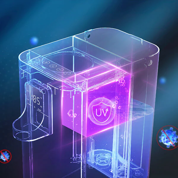 Inteligentny ekran wyświetla w czasie rzeczywistym jakość wody, żywotność filtra i stan działania lampy UV. Urządzenie wyłącza się automatycznie po 20 sekundach bezczynności. Tryb plateau automatycznie dostosowuje temperaturę wody do różnych potrzeb.