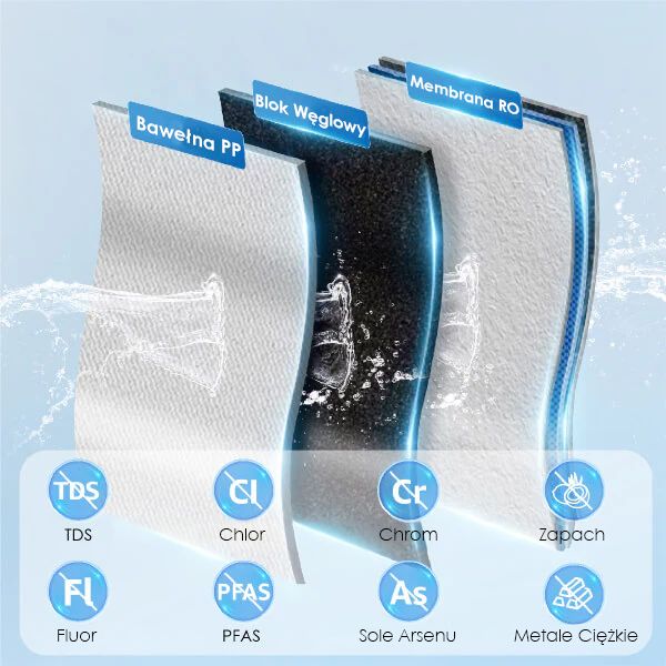 | Tworzywo | Włókno polipropylenowe (PP), Blok węglowy, Membrana RO |