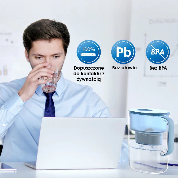 Wykonany z materiałów dopuszczonych do kontaktu z żywnością, bez BPA i ołowiu, dzbanek zapewni Tobie i Twojej rodzinie czystą wodę.