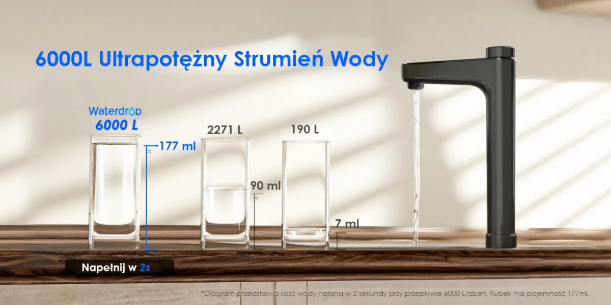 7 490,00 złByło 8 599,00 złOszczędź 1 109,00 złWaterdrop X16 to bezzbiornikowy filtr wody pod zlew z odwróconą osmozą (RO) i lampą UV, przeznaczony do stałej filtracji wody kranowej. Oczyszcza wodę w chwili poboru i podaje ją bezpośrednio z instalacji, zapewniając ciągły dostęp do filtrowanej wody bez magazynowania. Dedykowany kran z wyświetlaczem umożliwia kontrolę TDS, stanu filtrów oraz precyzyjne dozowanie objętości wody.