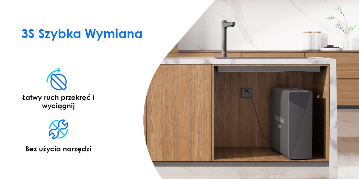 4 749,00 złByło 5 599,00 złOszczędź 850,00 złWaterdrop X12 to bezzbiornikowy filtr wody pod zlew z odwróconą osmozą (RO) i sterylizacją UV. Filtruje wodę w chwili poboru i podaje ją bezpośrednio z instalacji domowej, zapewniając stały dostęp do czystej, filtrowanej wody bez magazynowania i bez potrzeby korzystania z wody butelkowanej. Zintegrowana lampa UV wspiera higienę wody na etapie podawania, a dedykowany kran umożliwia bieżącą kontrolę parametrów i wygodne nalewanie.