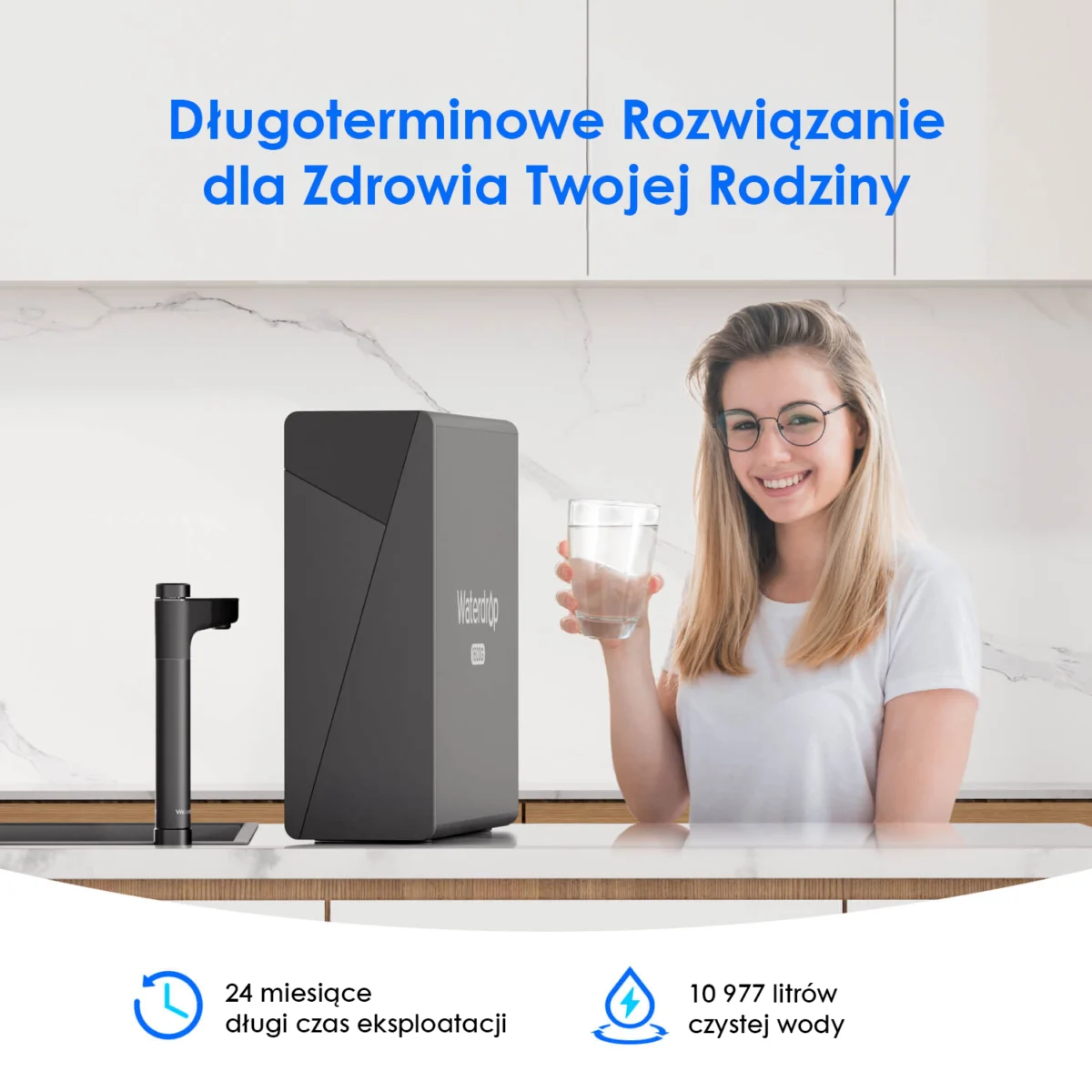 Zapewnia do 24 miesięcy lub około 11 000 litrów czystej wody dla Ciebie i Twojej rodziny, w zależności od jakości wody.